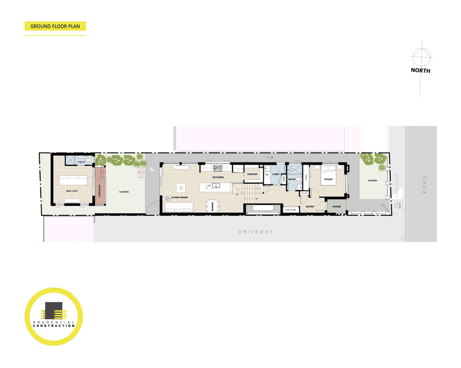 Starting with a full demolition, we crafted a two-story building design that embraces the site’s unique slope and height restrictions. To minimise excavation and control costs, the design divides the site into four functional levels; an entry area, a lower zone with study, shoe storage, and laundry, a middle level with an open kitchen, pantry, dining, and living room, and a rear “man cave” with garden access.
