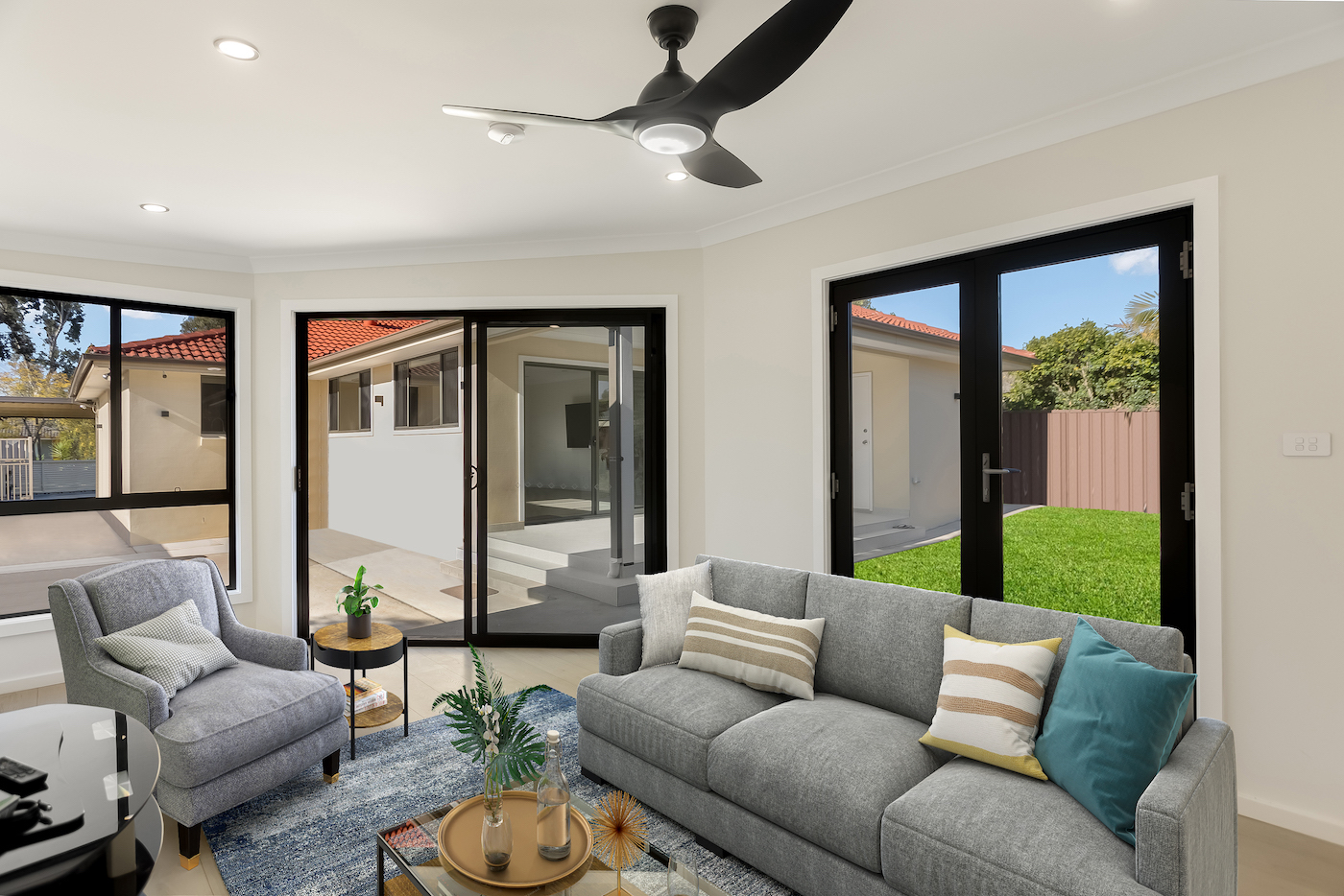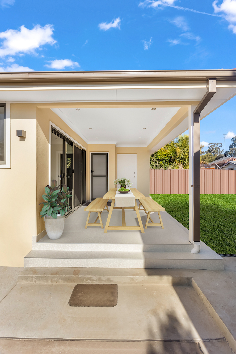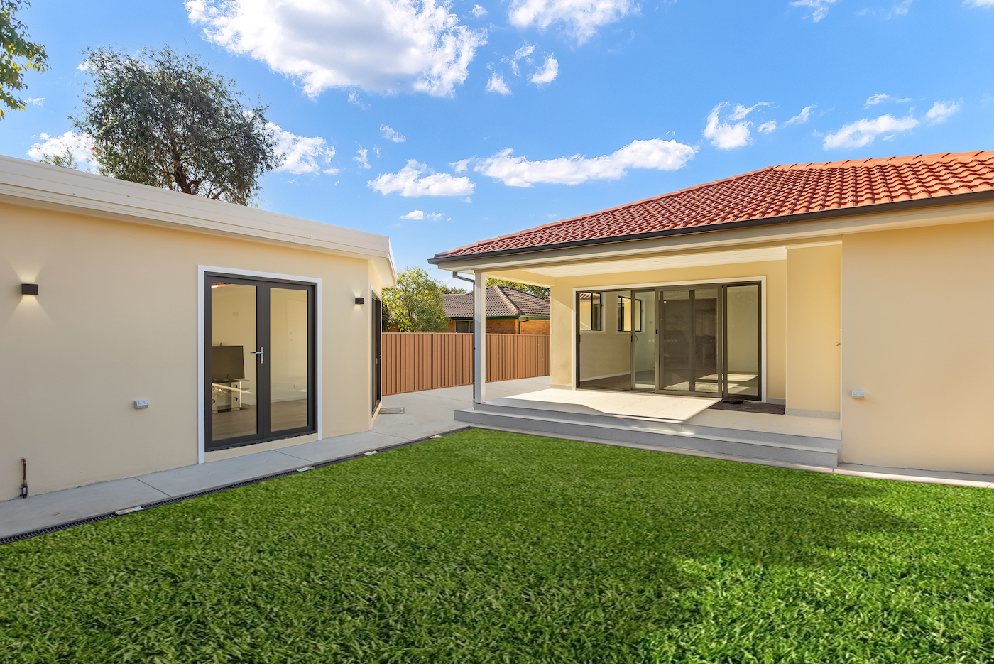 The detached studio, located at the rear side of the house, has its own attached ensuite and functions as an individual unit. In terms of materials, we have opted for natural-toned vinyl flooring to match the existing flooring, while tiles have been used in wet areas. The roof has been constructed using concrete tiles to maintain consistency with the existing structure. Ample clear windows have been incorporated throughout the extension and additions, ensuring a comfortable and well-lit living space, allowing plenty of natural light to illuminate the property.
